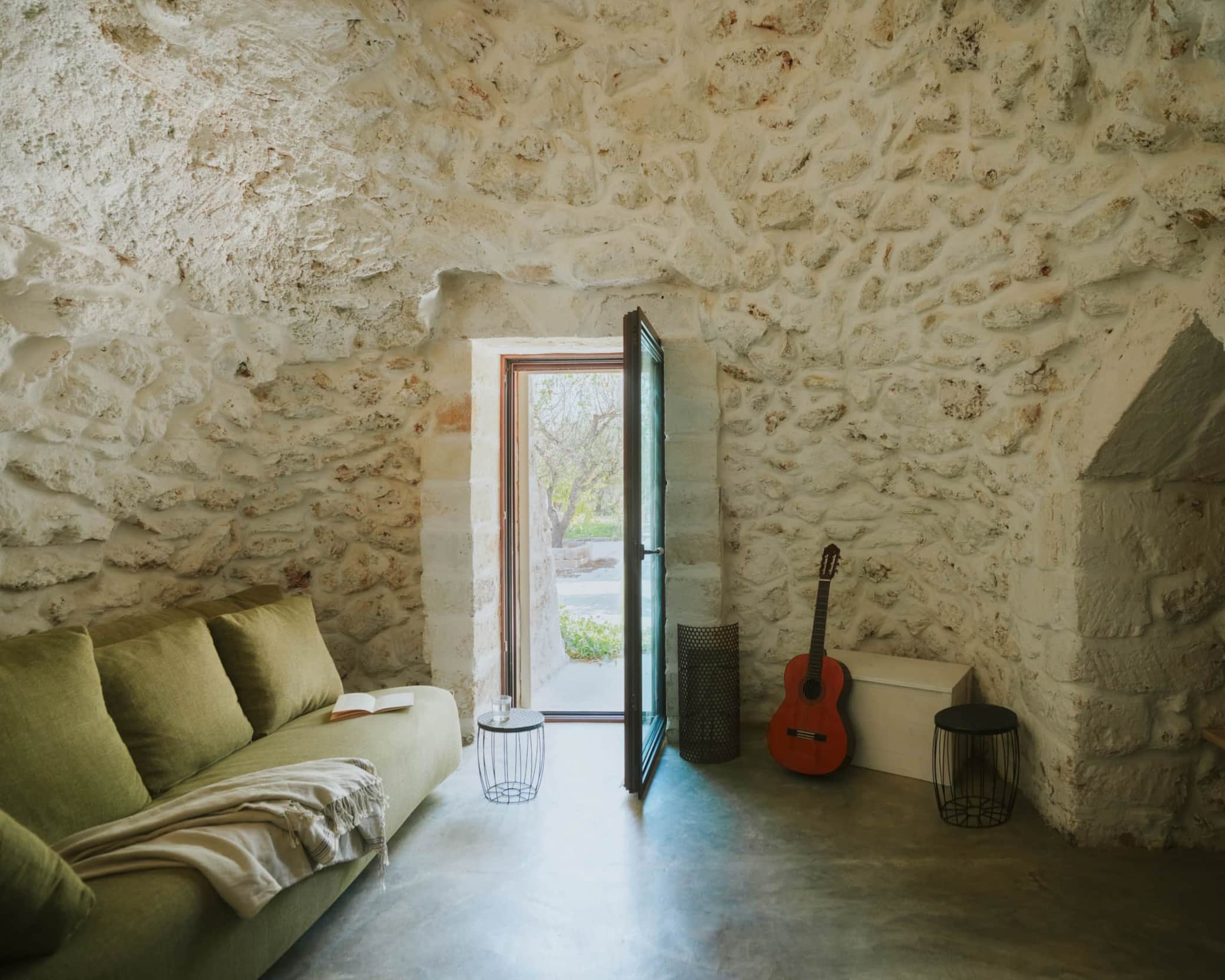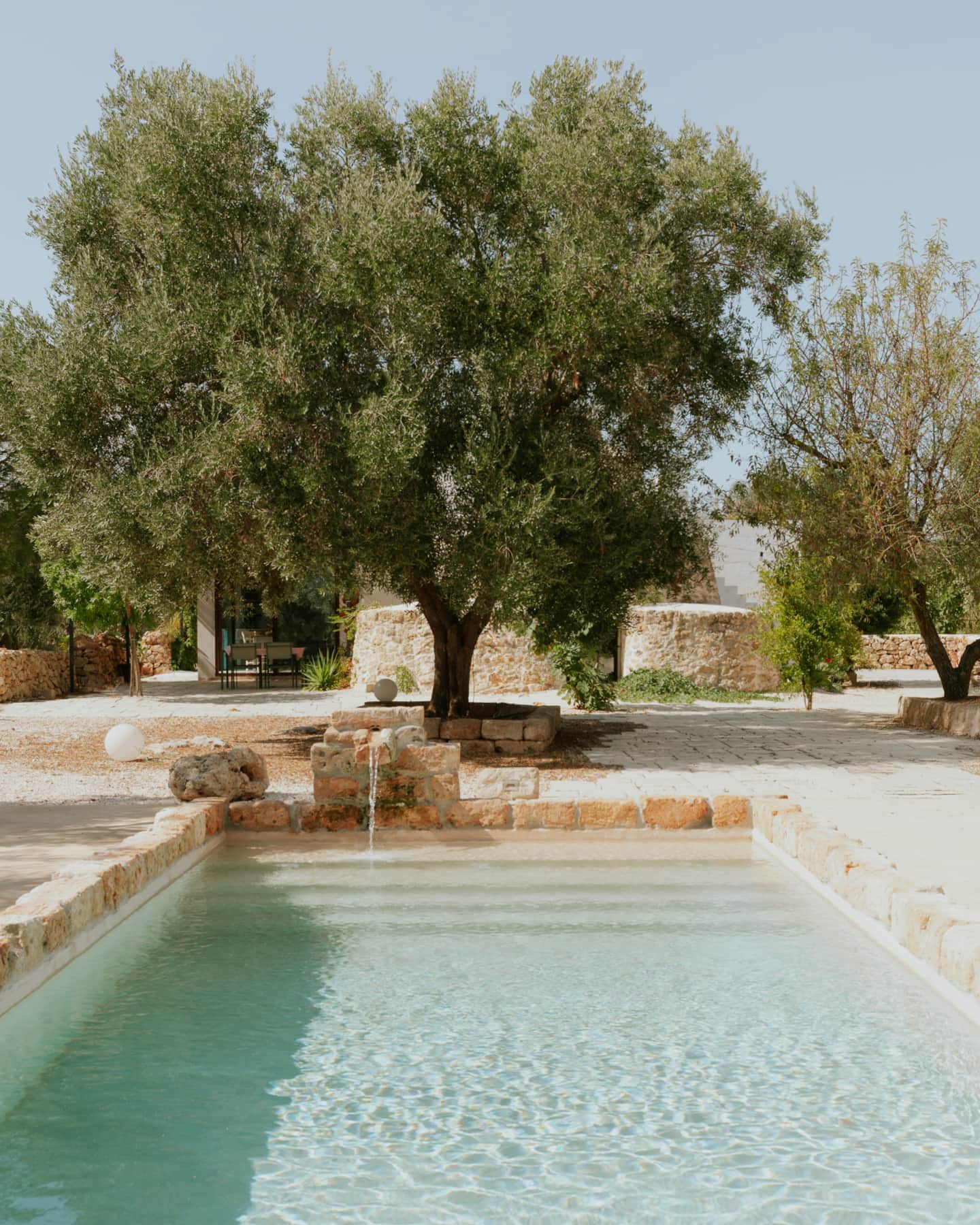 Each space has been crafted with care and restraint, blending authenticity with understated elegance. Step outside, and the landscape unfolds in silence: a private park of olive, fig, and almond trees.